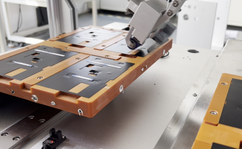 雙通道高效作業:同步完(wan)成兩條膠帶精準貼合,生產效率提(ti)升100%,單機產能抵2臺(tai)傳統設備;